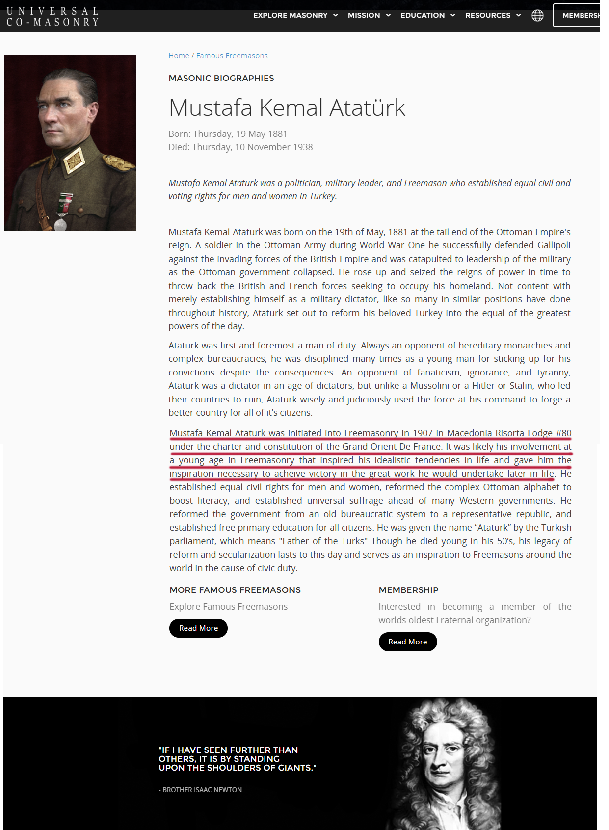 However, Ataturk is also a recognized Mason, as we can verify in the last document below, issued by Freemasonry itself.
